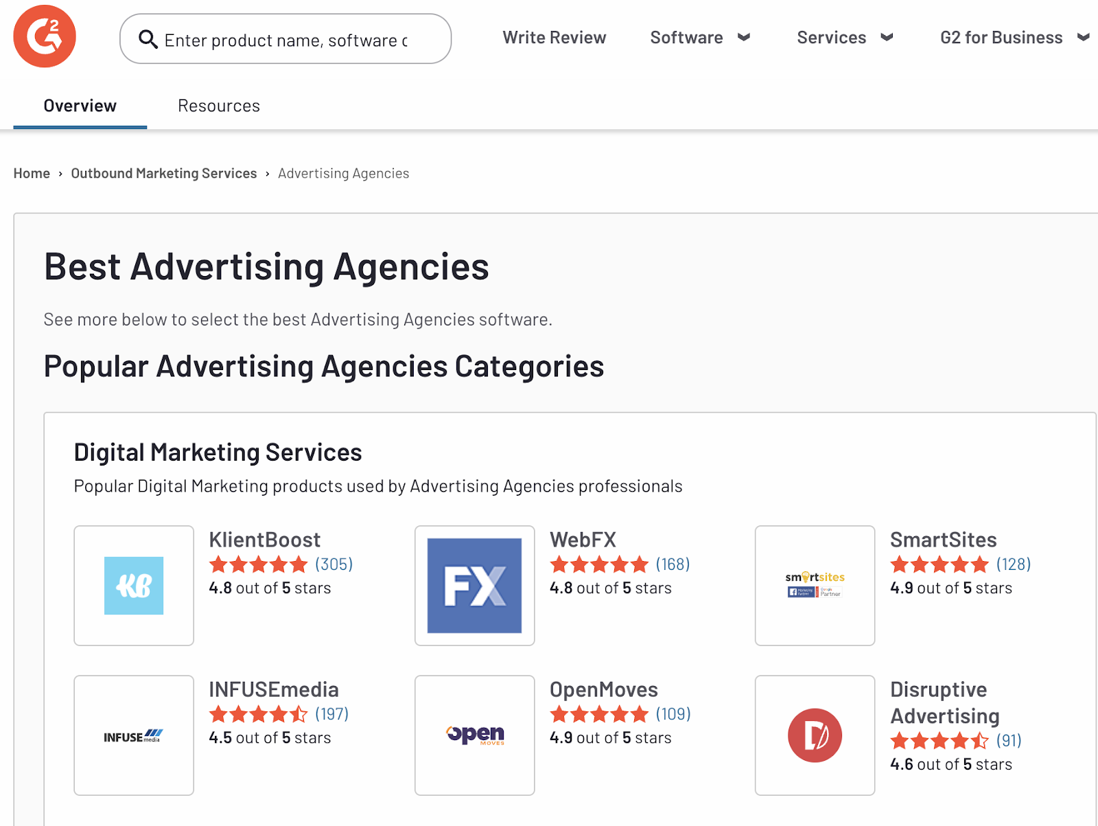 If your ICP is actively looking for advertising agencies, they may compare you to your competitors on sites like G2 or Capterra.